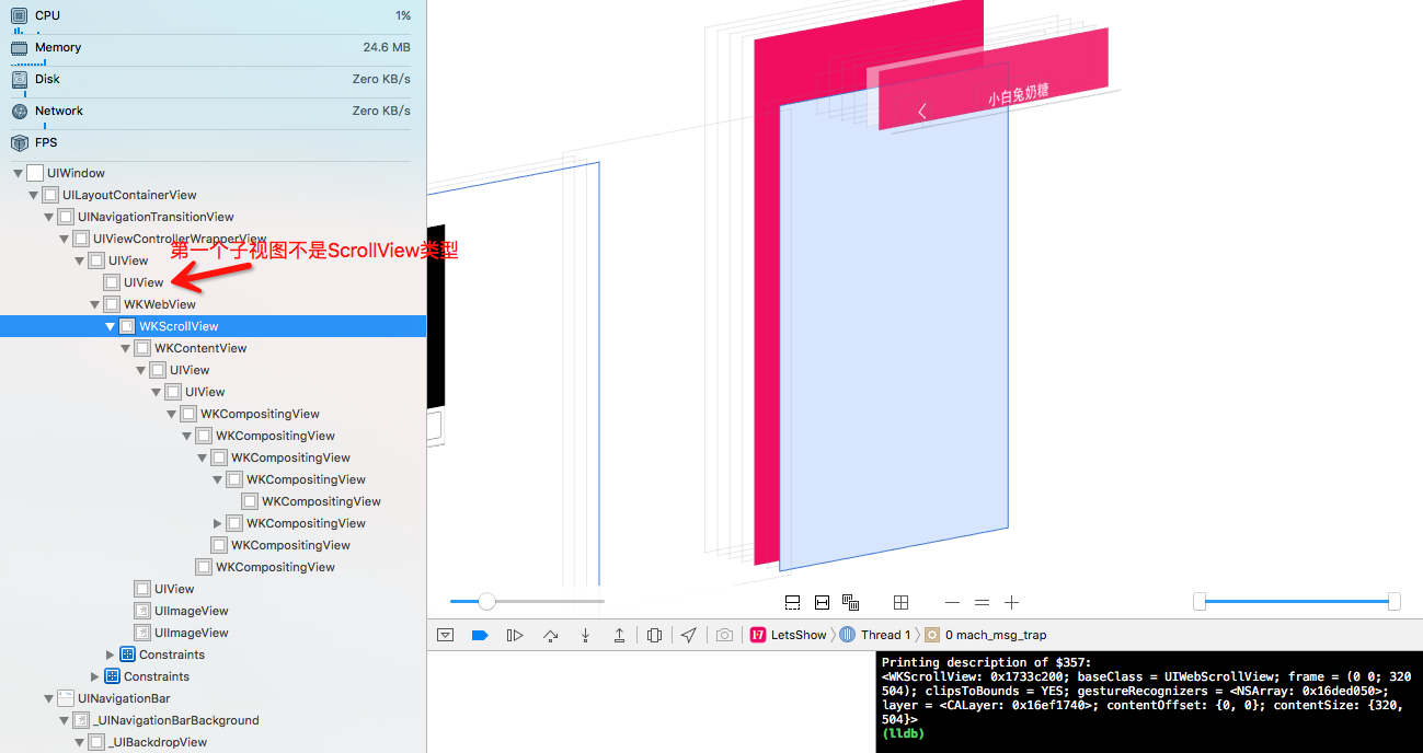 1 | //控制器view属性第一个子视图是wkWebView时 |