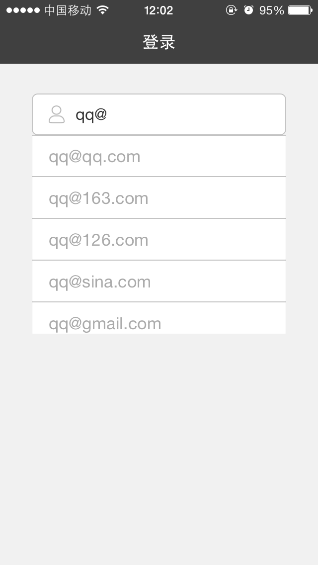 图片中的邮箱列表就是一个TableView,加到了控制器的View上.因为这个是登录界面,点击输入框会弹出键盘,所以我在View上加了一个点击手势,点击到View就收起键盘.就是这样一个场景,导致TableView中的didSelectRowAtIndexPath不会被触发.