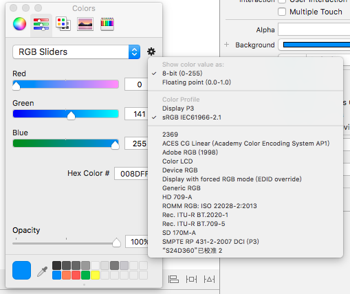 - 2.1.13. 升级Xcode8之后可视化设置的颜色与实际运行效果不符合.