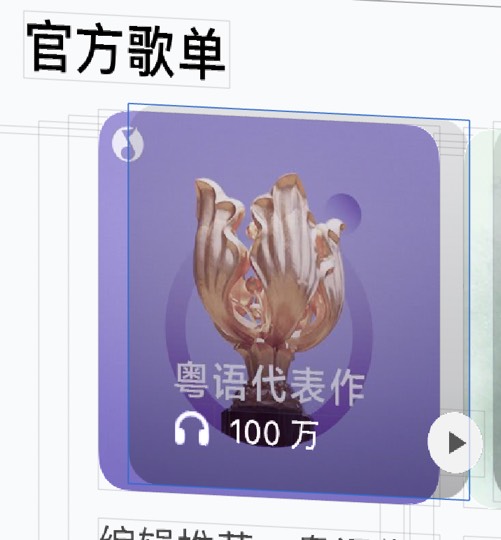 其中歌单的Cell, 因为要在图片上显示白色的文本, 所以我在图片上加了一个灰色渐变蒙版, 这样底部的数字看起来才会清晰. 不然遇到白色图片文字就看不清了. 另外两个Cell也是同理 不过截图没体现出来. 这些圆角都使用下面两行代码搞定