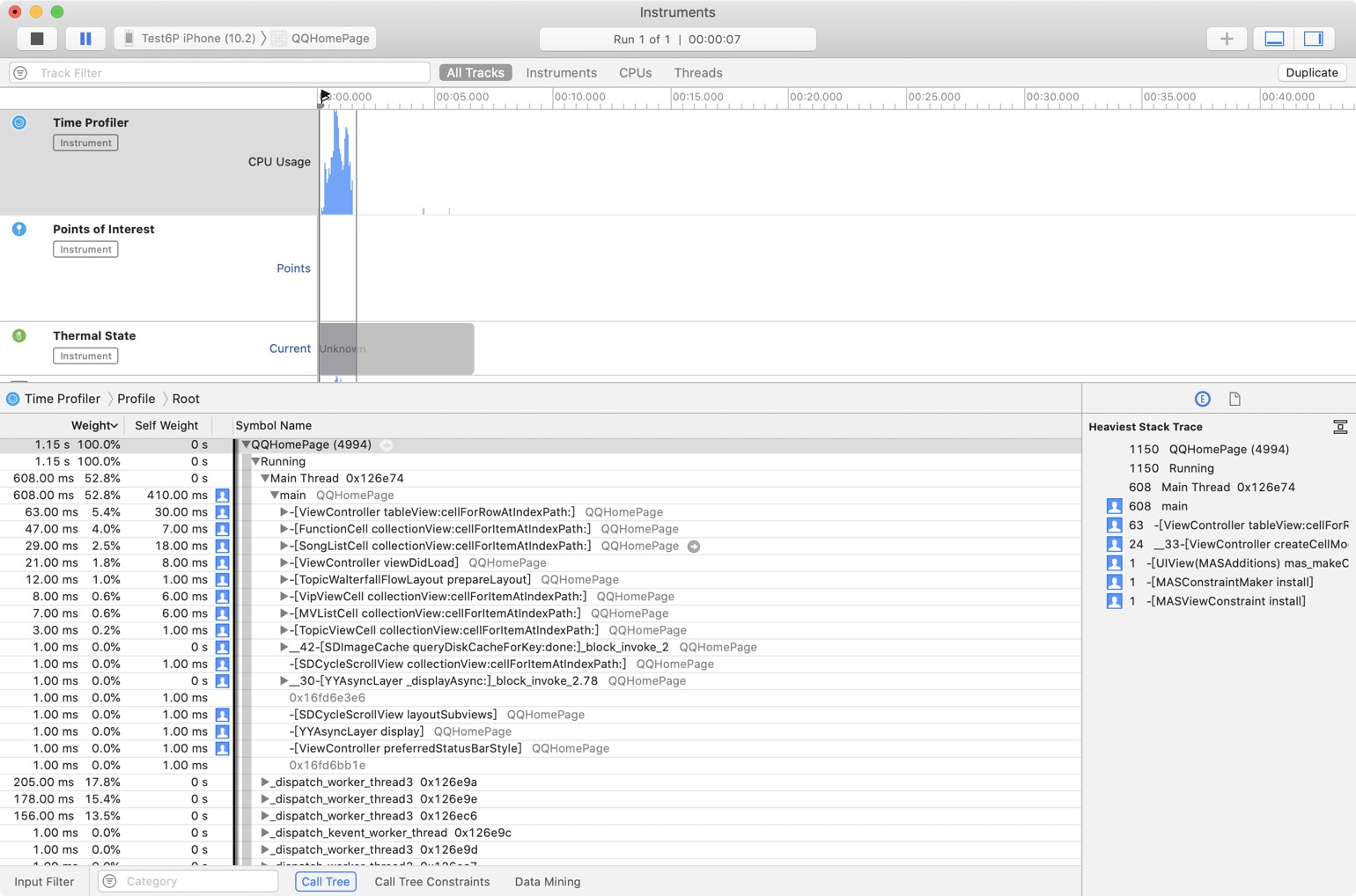 - 主线程主要工作量在TableViewCell和CollectionViewCell的加载