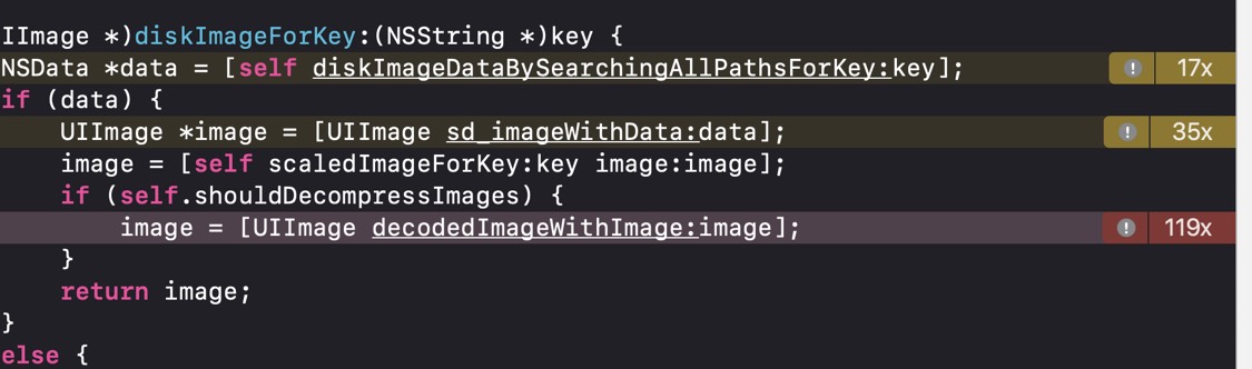 一个线程中的SDImageCache缓存加载主要是在图片解码的地方, 消耗了119ms.