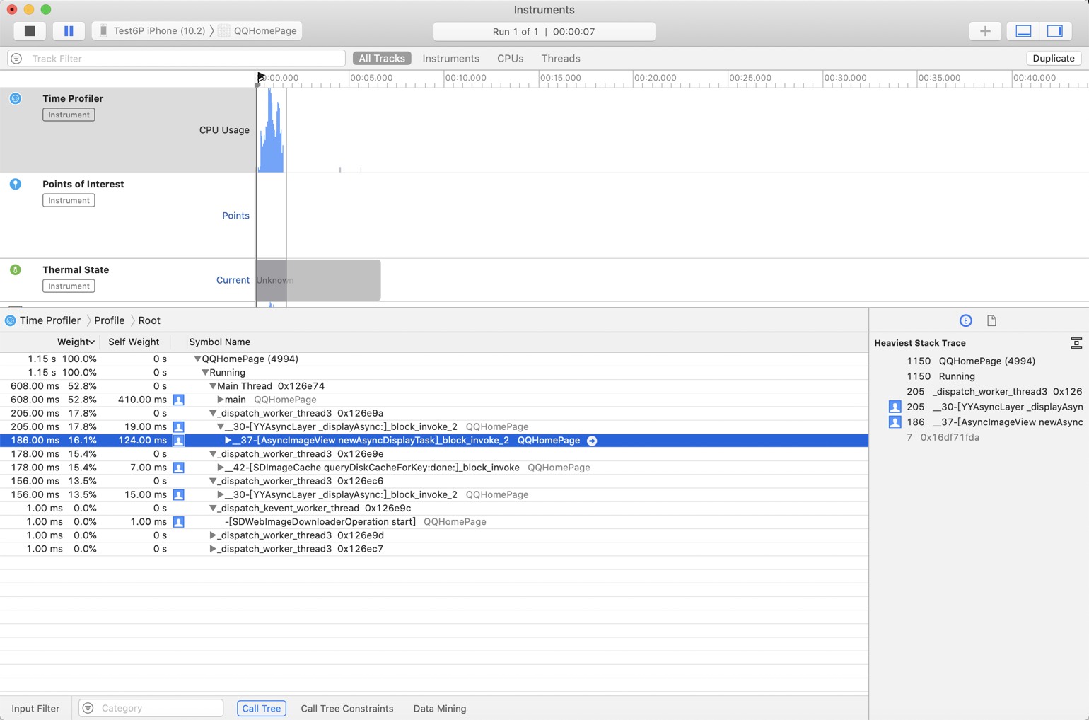 一个线程中的AsyncImageView的图片绘制占用了149ms, 阴影绘制占用了36ms.