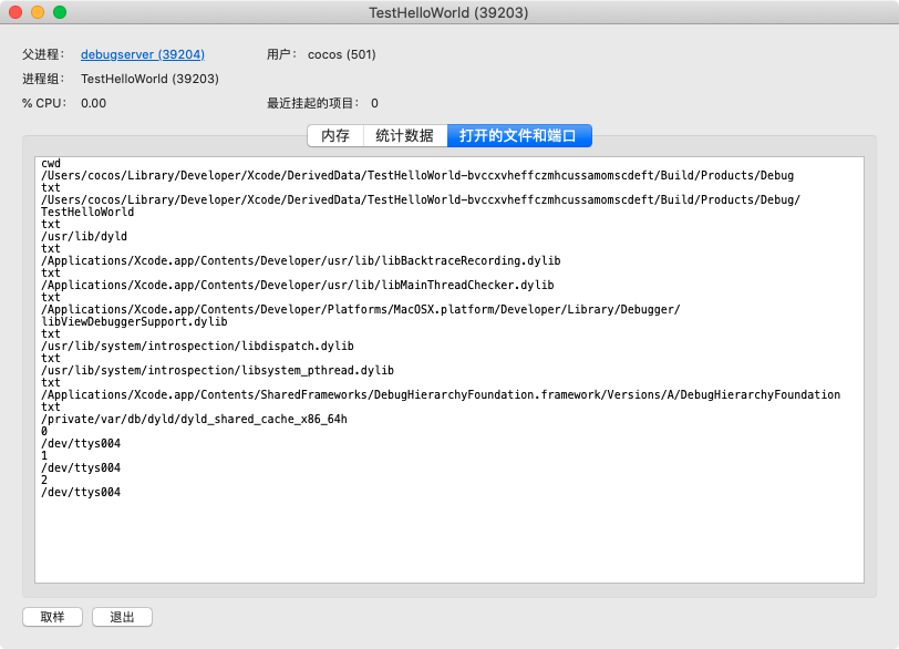 这个程序本身是很简单的,但是却被注入了多个dylib,这就是环境变量的威力了。dyld加载器会根据环境变量中的一些特定标志,在加载程序之前先加载指定动态库,这样我们才能愉快地使用Xcode提供的调试功能。