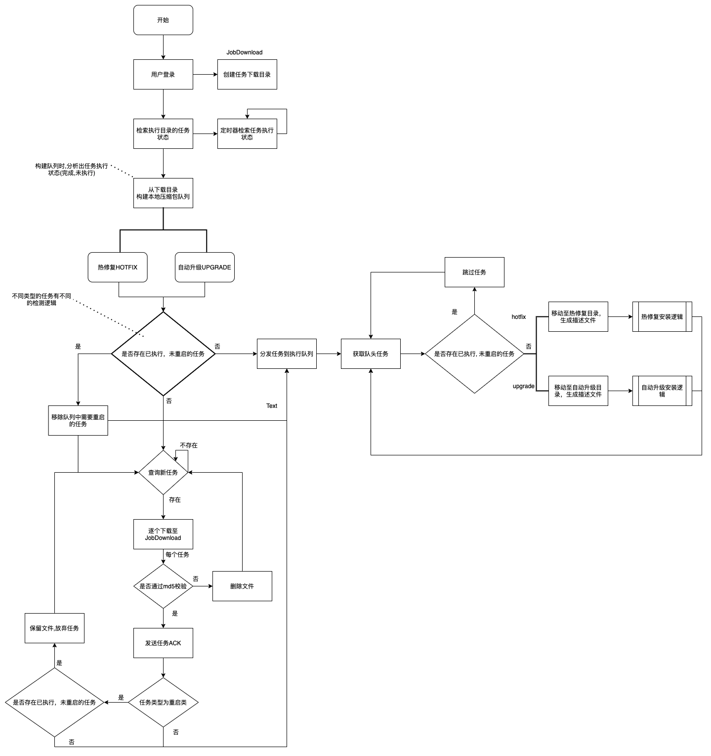 后来觉得,直接有多少任务就安装多少任务,无需再区分是否重启,所这样实现逻辑也会简单明了很多,而功能体验上也会更好。以上面的是否存在重启类任务的分支就始终返回否了。